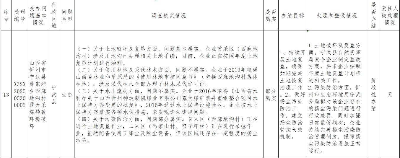 中央生態(tài)環(huán)境保護督察組群眾信訪舉報轉辦和邊督邊改公開情況一覽表