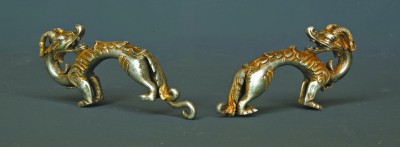 從造型看,這對(duì)銀龍“獸身飛羽、鱷吻回首”。其軀干是哺乳動(dòng)物的造型(蒙古學(xué)者認(rèn)為是獵狗),而不是后來(lái)大家常見的爬行動(dòng)物,同時(shí)背部頸部都有飛起的羽毛。嘴為鱷魚嘴,向前突出,牙齒明顯,頭是回首狀。很多的細(xì)節(jié),包括牙齒、眼睛、羽毛,都做得很細(xì)致。周立剛認(rèn)為,這個(gè)龍與漢代壁畫、畫像石、瓦當(dāng)上龍形非常相近。