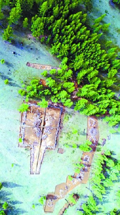 不同的是,匈奴貴族墓頂部有數(shù)米高的石砌方臺(tái),墓道邊緣也有石塊標(biāo)注。每個(gè)大墓的一側(cè),還呈弧形分布著數(shù)量不等的陪葬墓,像是一彎月亮。