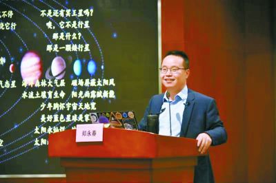 鄭永春 明天,是中國航天日。五十年前的這一天,我國第一顆人造地球衛(wèi)星“東方紅一號(hào)”成功發(fā)射,拉開了中國人探索太空的序幕。 今年,中國人探索太空的步伐,將邁向火星,我國將首次執(zhí)行火星探測(cè)任務(wù)。這令被孩子們稱為“火星叔叔”的鄭永春滿懷期待。這位首位獲得卡爾·薩根獎(jiǎng)的中國科學(xué)家,除了科學(xué)研究,做得最多的就是太空科普。 1968年,人類首次繞月飛行,阿波羅8號(hào)飛船上,航天員威廉·安德斯拍下了一張照片——黑色錦緞般的太空中,蔚藍(lán)的地球正從月球的地平線上,冉冉升起。 1990年,從地球出發(fā)的旅行者1號(hào)探測(cè)器,已在深空中飛行了13年。在行星科學(xué)家卡爾·薩根的建議下,旅行者1號(hào)調(diào)轉(zhuǎn)鏡頭,回望太陽系,拍下了太陽系有史以來的第一張全家福。照片中,地球只是一個(gè)暗淡的藍(lán)點(diǎn)兒,渺小得像一粒微塵。 這兩張照片,經(jīng)常出現(xiàn)在鄭永春的科普?qǐng)?bào)告中?!暗厍颍仁怯钪嬷小⒉蛔愕馈拇嬖?,又是承載全人類所有悲歡離合的唯一家園?!编嵱来赫f,雖知渺小,卻仍能邁出探索遠(yuǎn)方的腳步,這正是人類的勇敢之處。 胸懷宇宙,這是鄭永春的世界觀,也是他希望能在孩子們心中種下的夢(mèng)想。 模擬月壤,為登月鋪路 月球背面,日照更新。 4月16日、17日,“玉兔二號(hào)”月球車和嫦娥四號(hào)著陸器在“安睡”一個(gè)月夜后,分別受光照自主喚醒,進(jìn)入第十七月晝工作期。 月壤之上, “玉兔二號(hào)”,向著西北方向,平穩(wěn)前行,繼續(xù)探測(cè)。 玉兔的平穩(wěn),就有鄭永春的努力。 本科,西南農(nóng)業(yè)大學(xué)環(huán)境保護(hù)專業(yè);研究生,中國科學(xué)院地球化學(xué)研究所地球化學(xué)專業(yè);后來,開始研究月球、火星,在國家天文臺(tái)研究天文15年;還在香港高校的數(shù)學(xué)系里待了三年……鄭永春笑稱自己“學(xué)得很雜”。 雜亂之中,也有邏輯相系。這邏輯的起點(diǎn),是一顆探尋未知世界的夢(mèng)想之心。 鄭永春,出生在浙江紹興的一個(gè)小山村。小時(shí)候,他的學(xué)校門口有一張中國地圖,一張世界地圖,他經(jīng)常瞅著地圖發(fā)呆,原來外面的世界那么大。這兩張地圖,勾起鄭永春對(duì)遠(yuǎn)方的向往,這也是他夢(mèng)想的起點(diǎn)。 2000年,鄭永春考上中國科學(xué)院地球化學(xué)研究所的研究生,師從王世杰、李春來和歐陽自遠(yuǎn)。當(dāng)時(shí),歐陽自遠(yuǎn)還不是探月工程首席科學(xué)家,探月工程,也只停留在一份科研報(bào)告上。 一天,歐陽自遠(yuǎn)請(qǐng)學(xué)生們吃飯,說起了月球。“你們誰愿意研究月球?”鄭永春舉起了手?!爱?dāng)時(shí)月球很冷門,大家都有顧慮,因?yàn)檠芯吭虑?,好像沒有一個(gè)單位是對(duì)口的,畢業(yè)了怎么就業(yè)?”鄭永春邊回憶邊笑,當(dāng)時(shí),他沒想那么多,只是有一個(gè)直覺——月球這么近,中國人未來一定會(huì)登月。就是這個(gè)直覺,將鄭永春的目光從地面,延伸到太空。 鄭永春的直覺沒有錯(cuò)。2004年,探月工程立項(xiàng)。 可研究月球,從何入手?“我本科的專業(yè)與土壤有關(guān),我就從研究月球的土壤入手。” 鄭永春說。 根據(jù)月球探測(cè)的成果,可以獲得月球土壤的成分,然后再在地球上尋找類似物質(zhì)進(jìn)行加工和配比,從而模仿月壤。鄭永春請(qǐng)教地質(zhì)專家,遍尋中國東北、西南、西北各地的火山噴發(fā)物質(zhì),用以跟月球上的土壤和巖石進(jìn)行對(duì)比,最終選擇了最為接近的吉林長白山地區(qū)某火山的火山灰作為加工模擬月壤的基本成分。 地球上的土壤一般是巖石經(jīng)過風(fēng)、水和微生物的作用后風(fēng)化形成,而月球上既沒有風(fēng)侵水蝕,也沒有微生物,月壤是巖石經(jīng)小行星和微隕石撞擊、熔融,再黏結(jié)形成的。月壤顆粒跟地球土壤顆粒很不相同,細(xì)小而且棱角尖銳,“就像玻璃碴一樣?!编嵱来赫f,為了使模擬月壤盡可能接近真實(shí)月壤,鄭永春在火山灰中添加鈦鐵礦、燒結(jié)玻璃等物質(zhì),經(jīng)過除雜、球磨等后期加工,終于成功模擬月壤。 模擬月壤有什么用?鄭永春笑笑,沒有立即回答,而是從書架上拿起一個(gè)一手可握的小球?!斑@是3D打印的月球?!编嵱来哼呎f,邊轉(zhuǎn)動(dòng)小球,“月球的背面坑坑洼洼,密密麻麻都是撞擊坑,說明它非常古老。月球的正面相對(duì)光滑,是月海,是巖漿平原?!编嵱来赫f著,又拿起一個(gè)玻璃瓶,里面是模擬的月球土壤,“有了這個(gè)土壤,我們就可以模擬出月球的地面,撞擊坑,來試驗(yàn)著陸器、月球車。” 2013年中國首個(gè)月球車“玉兔”奔月之前就曾在用模擬月壤鋪設(shè)出的模擬月球試驗(yàn)場(chǎng)中,反復(fù)測(cè)試。 “嫦娥”“玉兔”已登臨月背,鄭永春也在為中國人登月做著準(zhǔn)備。他新的研究方向是“月球上的‘PM2.5’”?!霸虑蛏系摹甈M2.5’,就是月塵?!编嵱来盒χ忉專聣m,可以帶電飄浮又有棱角,磨損性非常強(qiáng),不僅會(huì)遮擋鏡頭,對(duì)月球車、宇航服等造成損傷,而且一旦附著在宇航服上被帶入登月艙,還會(huì)對(duì)宇航員的健康造成損害。模擬“月塵”之后,鄭永春與醫(yī)學(xué)專家合作實(shí)驗(yàn),證明吸入“月塵”的小鼠會(huì)有一系列病理反應(yīng),產(