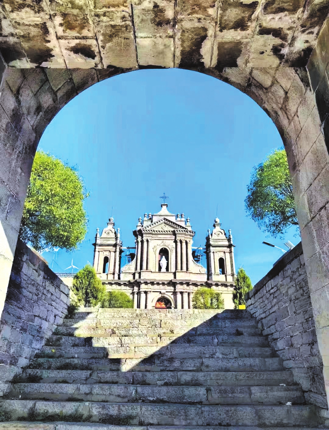 這座教堂始建于18世紀70年代,占地達三萬平方米。1897年—1898年間,意大利籍主教艾士杰與建筑師李有剛運用當?shù)仄胀ùu石,奇跡般建造出一座異國風情的高山城堡。教堂主體建筑簡練垂直,頂部裝飾方圓相間,數(shù)不清的十字架直指云天。內(nèi)部則完全是西式的雕像、壁畫和教務(wù)活動,讓人恍如置身歐洲。