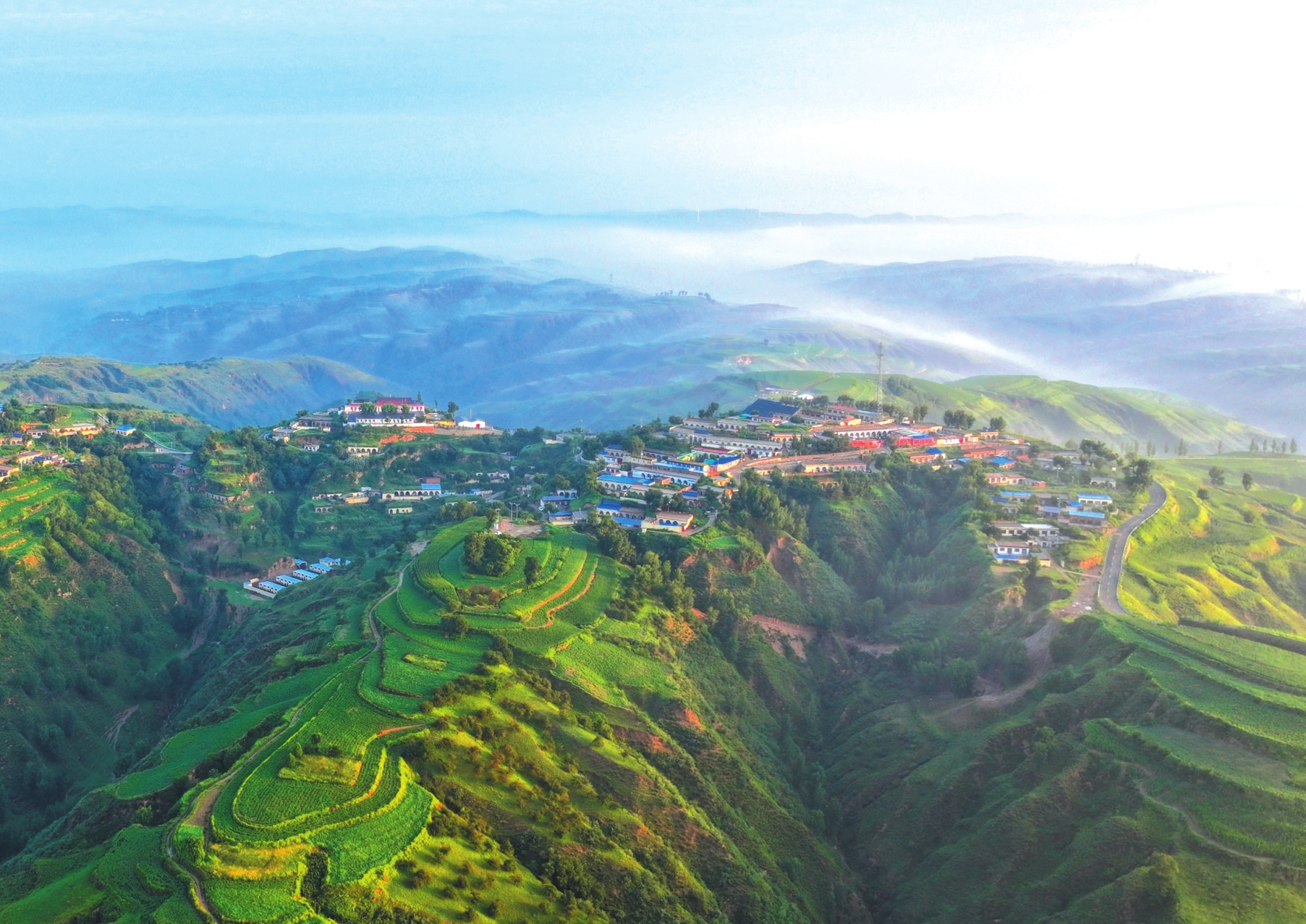 顧大明對(duì)河曲縣傾力開發(fā)翠峰山旅游資源、打造趙家溝寫生基地深表欣慰。今日翠峰山松柏蒼郁、群峰拱峙,登頂俯瞰,晉西北黃土高原地貌盡收眼底,雄渾氣象令人頓生“會(huì)當(dāng)凌絕頂”之慨?!斑@里不僅有厚重的黃土,更有勤勞勇敢、世代守護(hù)家園、將荒原變綠地的人們?!彼で闈娔?,將壯麗風(fēng)景與奮斗身影一并融入筆端。