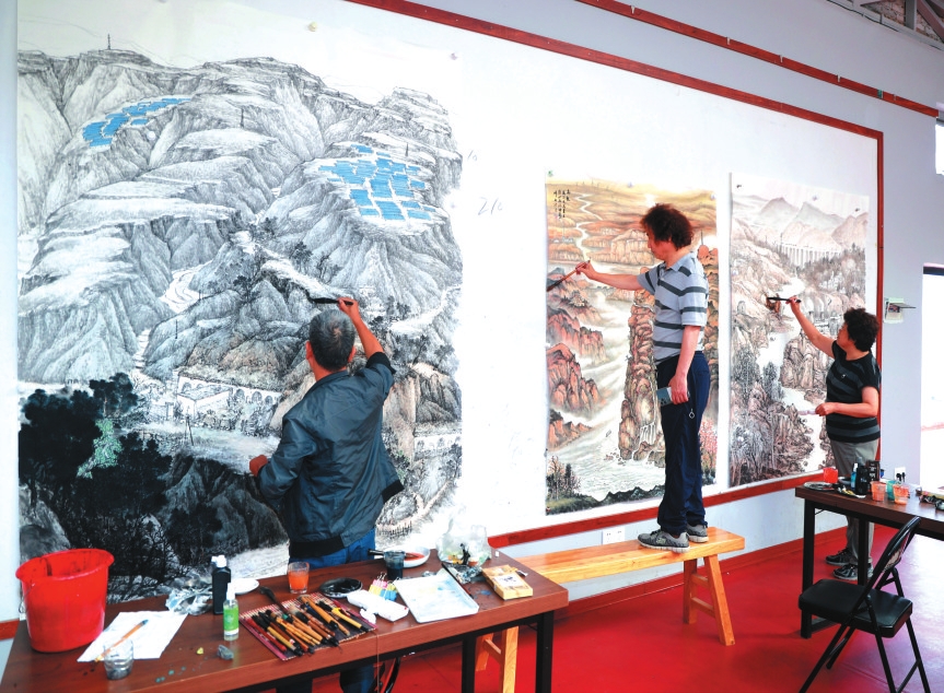 中國(guó)青綠山水畫院秘書長(zhǎng)金石已是二度造訪:“每次感受都不同,黃土高原總能滋養(yǎng)心靈,激發(fā)無(wú)盡創(chuàng)作靈感。”此行他激情揮毫,創(chuàng)作了《雪域高原》《春曉趙家溝》《翠綠趙家溝》三幅作品,并已將“金秋趙家溝”主題納入明年的創(chuàng)作藍(lán)圖。