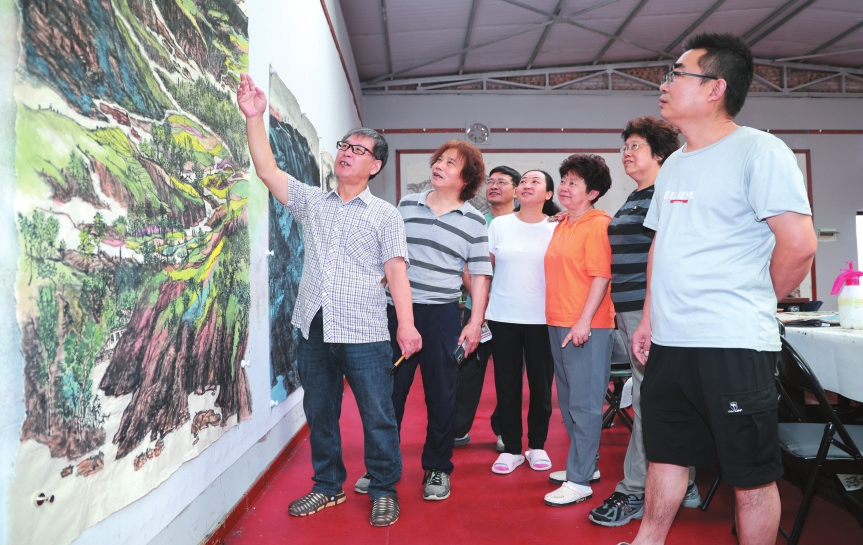 連綿的山巒、錯(cuò)落的民居、獨(dú)特的虎斑地貌、古樸的窯洞與層疊的梯田在藝術(shù)家筆下一一蘇醒。陜西女畫家祝秀琴初次來(lái)到趙家溝便被深深吸引:“這里村落風(fēng)貌保存完好,老樹、干柴、石頭皆是風(fēng)景,處處入畫?!痹谒壑校w家溝不僅擁有獨(dú)特的自然稟賦與豐富的旅游資源,其寫生產(chǎn)業(yè)鏈的完備更令人贊嘆——從食宿安排到寫生用具,從戶外寫生點(diǎn)到室內(nèi)畫室研討,一應(yīng)俱全。