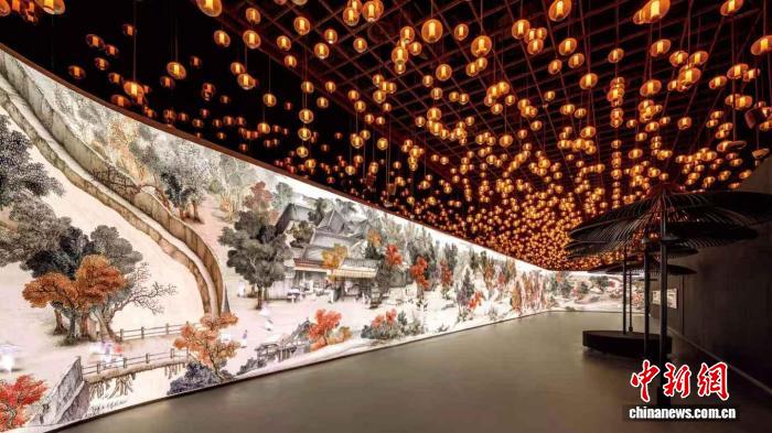 《金陵圖》為清代畫家馮寧創(chuàng)作的紙本設(shè)色長卷,現(xiàn)藏于德基藝術(shù)博物館。《金陵圖》在十米余長、連續(xù)而多元的場景中,共繪有人物形象533個、動物90只、車馬轎輿24余、店鋪攤販40余,郊外風(fēng)光宜人,百姓和樂;城內(nèi)商業(yè)繁華,上士高賓、商賈攤販齊聚,熙熙攘攘,熱鬧非凡,被譽為“最能代表南京”的傳世古畫。宋代中國社會各個階層的生活方式、經(jīng)濟(jì)活動以及宋代的建筑和服裝風(fēng)格,均在畫中得到了淋漓盡致的展現(xiàn),具有極高的歷史文化價值。2021年起,德基藝術(shù)博物館通過數(shù)字科技煥新文化遺產(chǎn)《金陵圖》,打造“金陵圖數(shù)字藝術(shù)展”,開展幾年來一直以其前沿的互動體驗和沉浸式觀展模式,廣受各界好評。