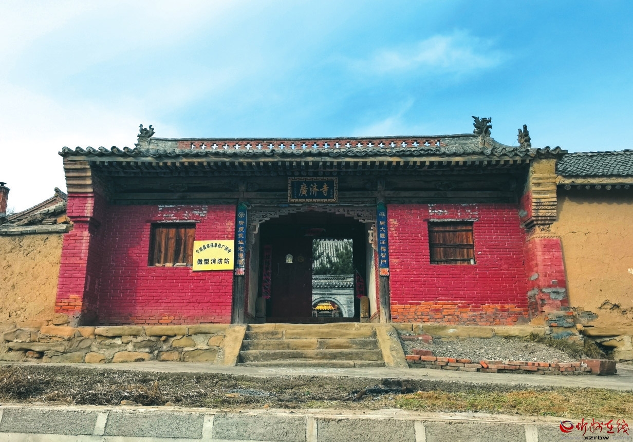 廣濟(jì)寺位于寧武縣東寨鎮(zhèn)東寺上村中,坐北朝南,東西25米,南北41米,占地面積約1025平方米。創(chuàng)建年代不詳,據(jù)碑文記載,明正德十三年(1518)、清康熙三十五年(1686)、清乾隆五十六年(1791)、清嘉慶十二年(1807)、清道光五年(1825)、清同治八年(1869)屢有重修。現(xiàn)存建筑為清代,中軸線依次有山門、大雄寶殿,兩側(cè)為配殿、鐘樓、鼓樓。 大雄寶殿建在臺基上,面闊三間,進(jìn)深四椽,單檐硬山頂,七檁前后廊式構(gòu)架,檐下為斗拱一斗二升交麻葉,前檐格扇門,后檐明間施板門。東西配殿分別為觀音殿和地藏殿,面寬三間,進(jìn)深四椽,單檐硬山頂。鐘、鼓樓為十字頂。山門面寬三間,進(jìn)深四椽,檐柱有雀替,山墻有墀頭。殿內(nèi)有碑六通。2015年8月忻州市人民政府公布廣濟(jì)寺為市級文物保護(hù)單位。 (責(zé)任編輯:盧相?。?/span> |