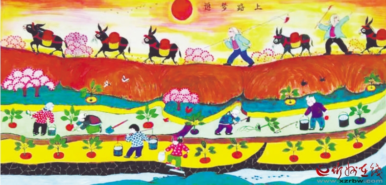 炕圍畫又稱“墻圍畫”,是一種中國(guó)民間常見的室內(nèi)裝飾畫。忻州處于高寒地帶,在農(nóng)村家家戶戶都用火炕取暖御寒,炕上的墻面極易脫落起皮,蹭臟衣物被褥。于是人們以刷墻所用的白土調(diào)以膠水,在環(huán)炕的墻上涂高約二尺的“圍子”,既保護(hù)了墻面,又使人們免遭臟衣污物之累。后來(lái),炕圍畫逐漸發(fā)展為以顏料做底、色彩畫花、桐油涂罩,既鮮艷明亮,又堅(jiān)固耐久。日常臟污了,用濕布擦拭,則又光亮如新。