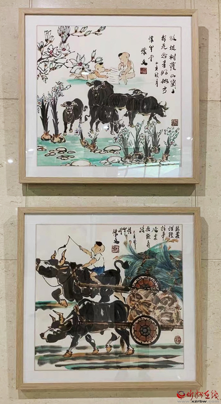 上千平方米的展廳內,299幅尺幅不同、姿態(tài)各異的以牛為表現主題的國畫作品,組成了一個牛的世界,多角度展現了牛的精神。