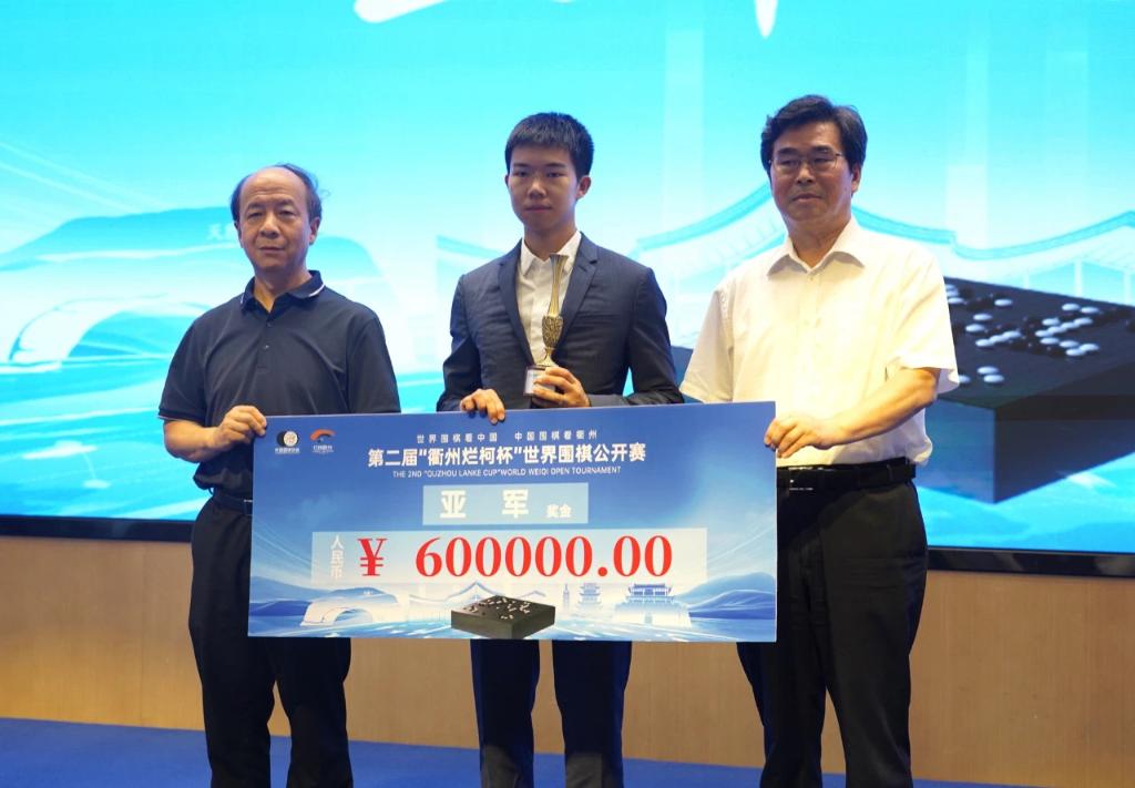 中國圍棋協(xié)會主席常昊等為參賽棋手頒獎。本次比賽冠軍獎金為180萬元人民幣,亞軍獎金為60萬元人民幣。