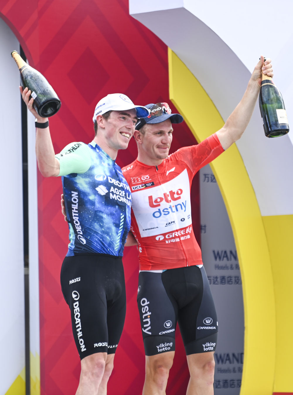 10月15日,萊昂內(nèi)爾·塔米尼奧(右)與斯坦·德伍爾夫在頒獎儀式上慶祝。新華社記者 曹祎銘 攝
