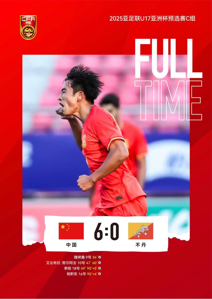 新華社大連10月23日電 23日,在大連進行的一場2025亞足聯(lián)U17亞洲杯預選賽C組第三輪比賽中,中國隊6:0大勝不丹隊,迎來兩連勝。