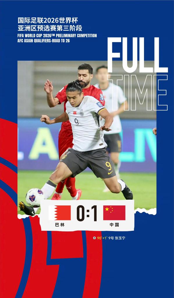 新華社麥納麥11月14日電 在14日進(jìn)行的2026年美加墨世界杯亞洲區(qū)預(yù)選賽18強(qiáng)賽第五輪比賽中,張玉寧在補(bǔ)時(shí)階段攻入制勝一球,幫助中國(guó)國(guó)家男子足球隊(duì)在客場(chǎng)1:0擊敗巴林隊(duì)。賽后,張玉寧在場(chǎng)邊接受采訪時(shí)表示,進(jìn)球是對(duì)全隊(duì)所有人的嘉獎(jiǎng)。