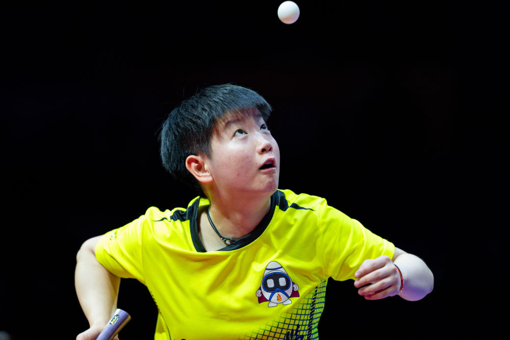 12月30日,深圳大學(xué)隊(duì)選手孫穎莎在單打比賽中發(fā)球。新華社記者 孫非 攝