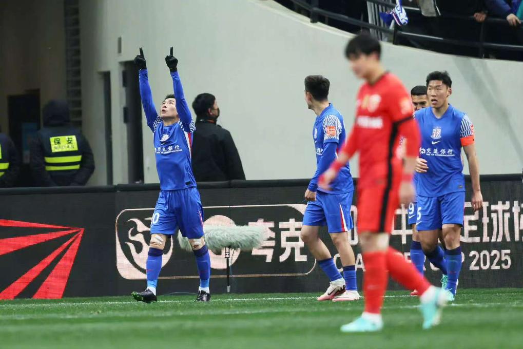 2月7日,上海申花隊球員于漢超(左)在進(jìn)球后慶祝。圖片來自上海申花足球俱樂部官方微博