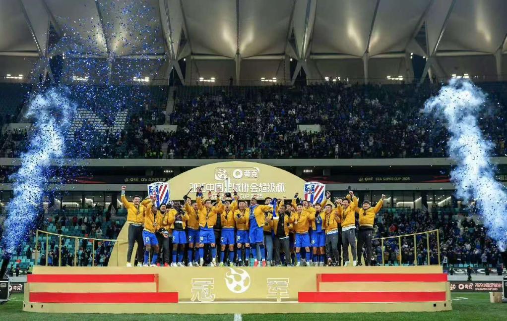 2月7日,上海申花隊在頒獎儀式上慶祝。圖片來自上海申花足球俱樂部官方微博