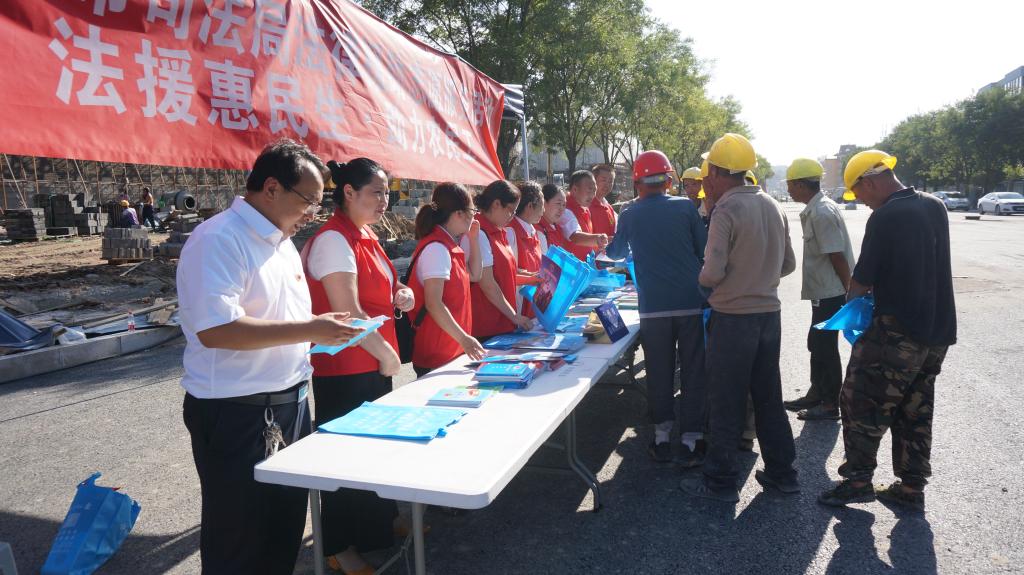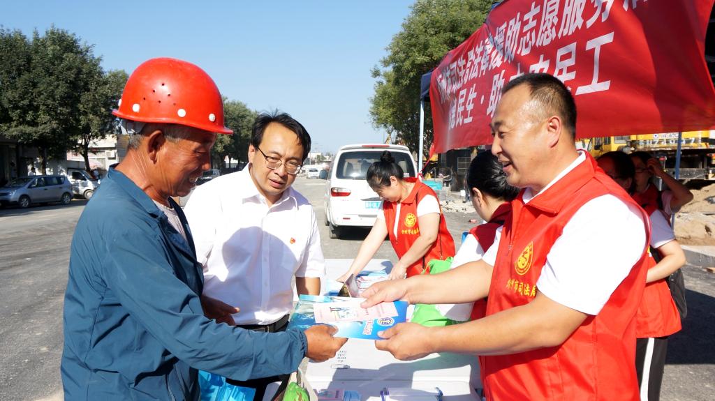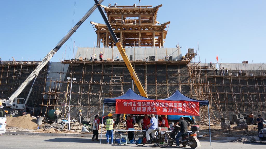 為深入貫徹落實習(xí)近平新時代中國特色社會主義思想和黨的十九大及十九屆二中、三中、四中全會精神,貫徹落實《保障農(nóng)民工工資支付條例》和國家、山西省關(guān)于農(nóng)民工服務(wù)工作的部署,切實加強(qiáng)我市農(nóng)民工安全生產(chǎn)意識,提高農(nóng)民工的維權(quán)意識和維權(quán)能力,8月13日下午,忻州市司法局組織市法律援助中心、公證處、律師事務(wù)所、司法鑒定中心組成法律援助志愿服務(wù)隊,走進(jìn)忻州古城建筑工地現(xiàn)場,開展了“法援惠民生·助力農(nóng)民工”法律援助志愿服務(wù)活動。