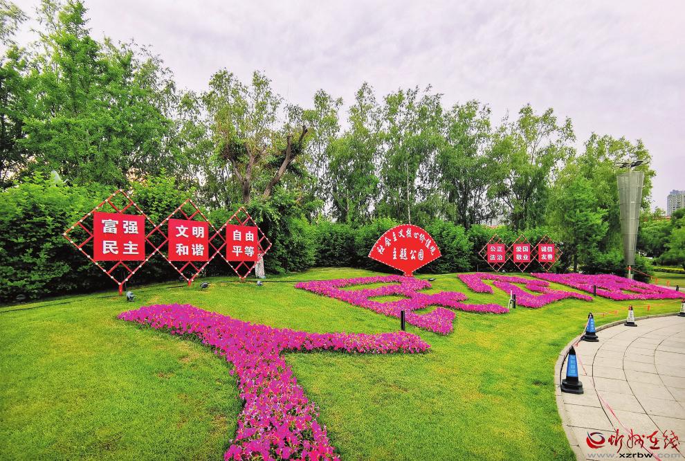 志愿者為過往群眾發(fā)放創(chuàng)文宣傳資料 本報(bào)通訊員 攝