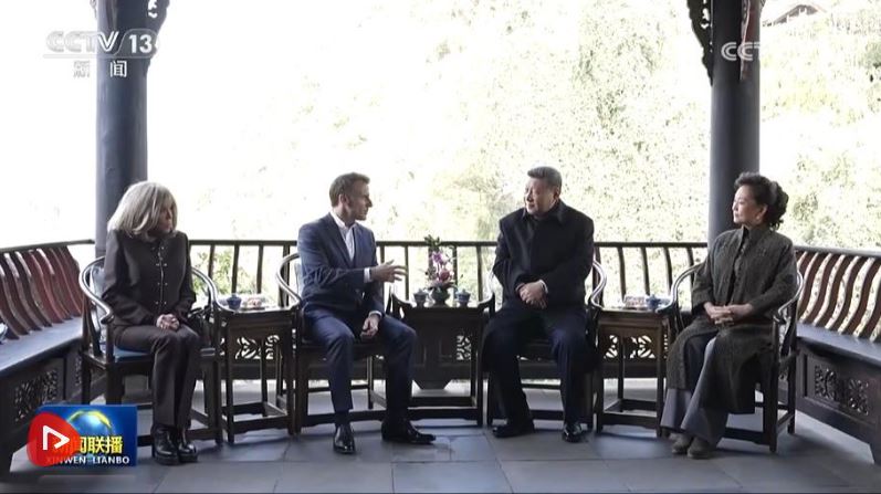 習(xí)近平夫婦邀請(qǐng)馬克龍夫婦共進(jìn)午餐,繼續(xù)深入交流。