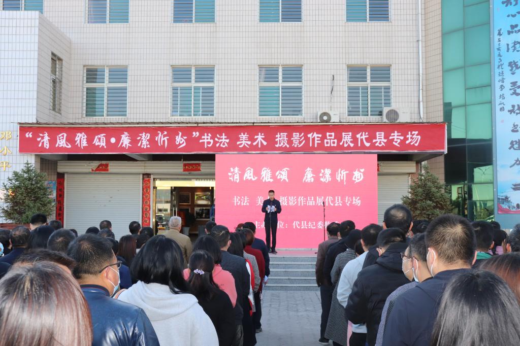 本次“清風雅頌·廉潔忻州”書法美術攝影作品展,在代縣專場展出為期三天,入展作品共260幅,其中包括忻州市部分國家級名家特邀作品47幅,省內(nèi)外助展作品23幅,我縣作品15幅。展出作品分為攝影圖片、書法藝術、繪畫和剪紙四個部分,作品主題鮮明,風格多樣,作者以書畫為載體,深入挖掘書畫藝術的廉潔內(nèi)涵,以畫承廉、畫賦廉意,結(jié)合傳統(tǒng)文化和現(xiàn)代手法,把理想信念、從政道德等反腐倡廉教育內(nèi)容,形象、生動、直觀地傳遞給廣大黨員干部群眾,使大家在欣賞中得到啟示,在愉悅中受到教育,讓代縣全體黨員干部在潛移默化中受到廉潔教育影響,同時營造“以廉為榮、全民崇廉”的黨風廉政建設新格局。