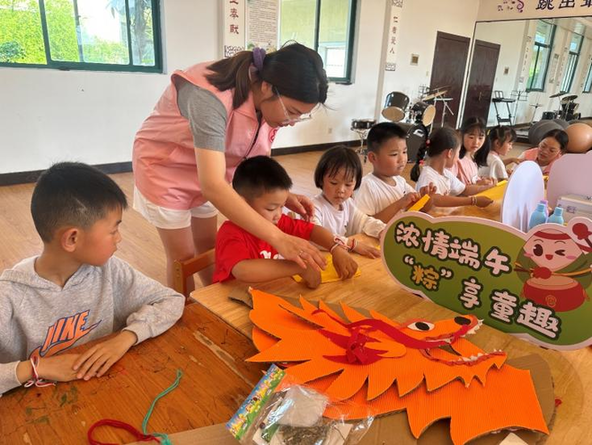 “五月五,是端陽,門插艾,香滿堂。吃粽子,喝雄黃,劃起龍船慶吉祥?!被顒蝇F(xiàn)場,志愿者們給孩子們講解了很多關于端午節(jié)的傳說、故事、兒歌,在繪聲繪色的講述中,引導他們了解端午節(jié)習俗,開展誦讀國學經典活動,增進對中國傳統(tǒng)節(jié)日的認識。