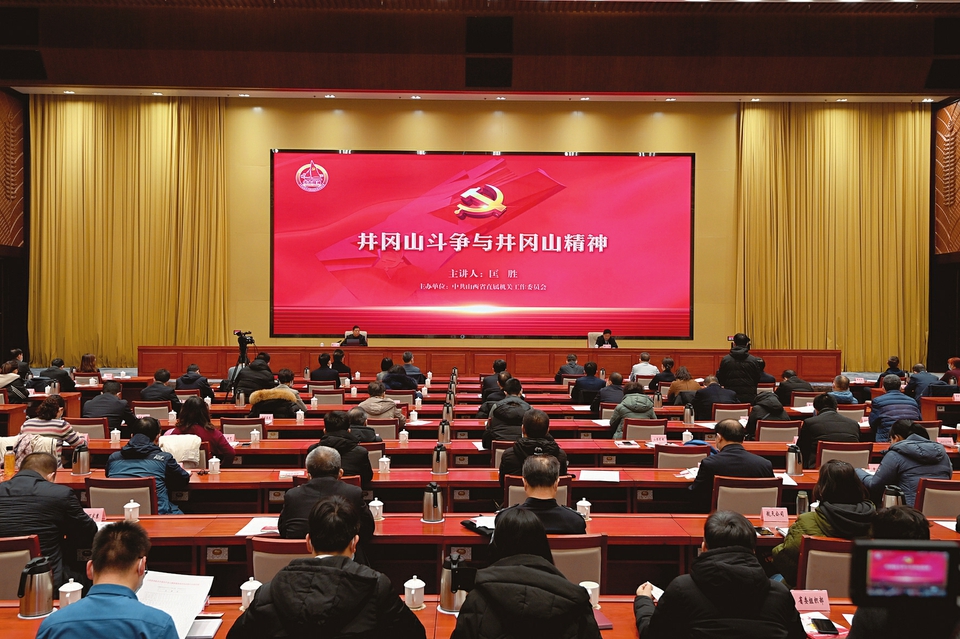 報告會以井岡山斗爭與井岡山精神為主題,邀請中國井岡山干部學(xué)院副院長、教授匡勝從中國革命的起源發(fā)展、革命道路的尋求探索、井岡山道路的抉擇歷程、井岡山精神的傳承發(fā)揚四個方面,全面、系統(tǒng)、深刻地闡釋了井岡山斗爭蘊含的偉大實踐、偉大抉擇和偉大精神。