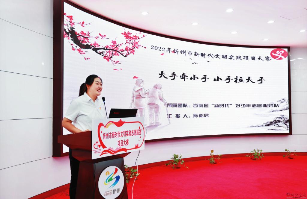 9月5日,我市舉行新時(shí)代文明實(shí)踐志愿服務(wù)項(xiàng)目大賽,進(jìn)一步弘揚(yáng)“奉獻(xiàn)、友愛、互助、進(jìn)步”的志愿服務(wù)精神,培育具有忻州特色的志愿服務(wù)項(xiàng)目,推動(dòng)我市志愿服務(wù)常態(tài)化、項(xiàng)目化發(fā)展。本次大賽由市委宣傳部、市委文明辦主辦,來自我市14個(gè)縣市區(qū)的39名志愿者參加比賽。比賽現(xiàn)場,參賽者們圍繞技藝傳承、生態(tài)環(huán)保、公益課堂等39個(gè)項(xiàng)目背景、實(shí)施情況等內(nèi)容,通過答辯等形式講述故事,讓大家充分領(lǐng)略了志愿服務(wù)的無限魅力和活力。 (張存良 攝)