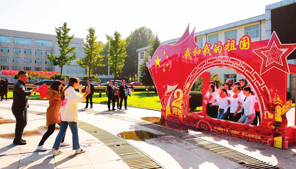 在中華人民共和國成立72周年到來之際,潞安化工集團(tuán)司馬煤業(yè)有限公司舉辦了“奮斗百年路·啟航新征程”職工自拍活動(dòng)并設(shè)置“節(jié)日合影墻”,營造出濃厚的節(jié)日氛圍。(秦鴻彬攝)