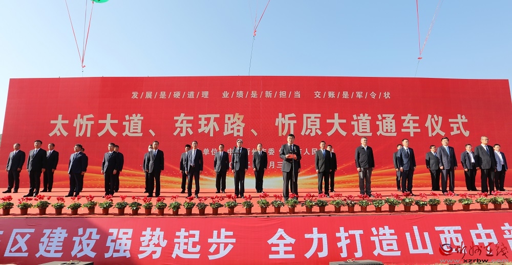9月30日,我市舉行太忻大道、東環(huán)路、忻原大道通車儀式,市委書記朱曉東出席儀式并宣布太忻大道、東環(huán)路、忻原大道通車。市委副書記、市長(zhǎng)李建國(guó)主持儀式。市委副書記、政法委書記郭奔勝,市人大常委會(huì)主任王珍,市政協(xié)主席范建民,山西建投集團(tuán)公司副董事長(zhǎng)、總經(jīng)理徐忠和,市領(lǐng)導(dǎo)劉卓良、趙新年、張文偉、溫建軍、張敏、張宇光、史紅波、賈玲香、崔崢嶺、李碩、王建峰、張文斌,市政府秘書長(zhǎng)張艮生,中鐵十七局集團(tuán)公司和中建三局集團(tuán)公司相關(guān)負(fù)責(zé)人出席。副市長(zhǎng)耿鵬鵬介紹項(xiàng)目建設(shè)情況。