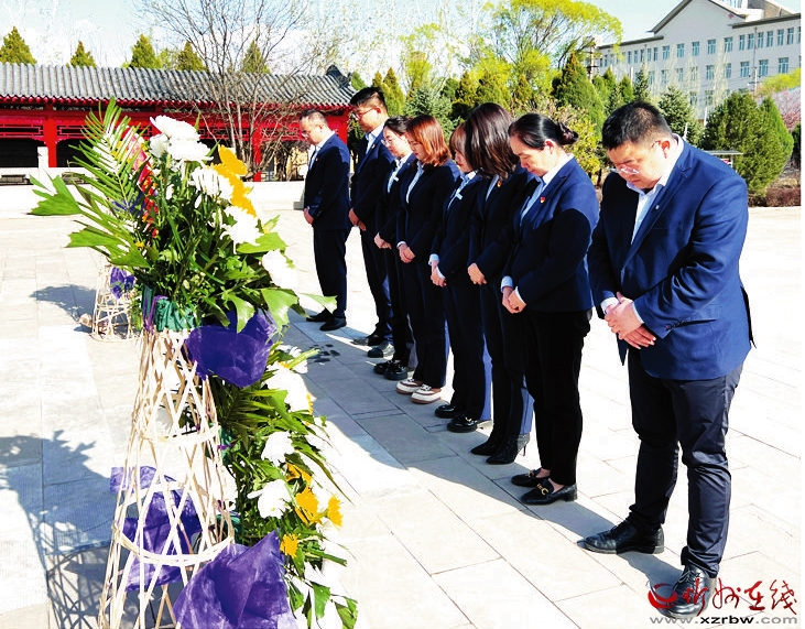 在莊嚴肅穆的烈士紀念碑前,全體黨員向烈士敬獻花圈,并列隊肅立,鞠躬默哀,表達對革命英烈的崇高敬意和無限哀思。在黨支部書記的帶領下,全體黨員重溫入黨誓詞。大家紛紛表示,參加此次主題黨日活動很受教育,進一步堅定了理想信念,將把紅色革命教育激發(fā)出來的熱情轉化為干事創(chuàng)業(yè)的強大動力,助推全行高質量發(fā)展。(辛麗芳攝)