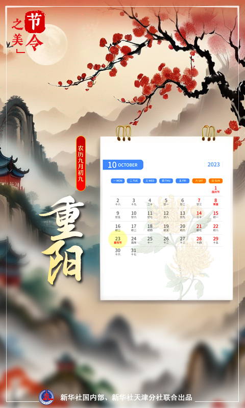 新華社天津10月22日電(記者周潤?。熬湃拯S花酒,登高會(huì)昔聞?!?0月23日,農(nóng)歷九月初九,重陽節(jié)。歲歲重陽,今又重陽。農(nóng)歷九月初九緣何是重陽?其中蘊(yùn)含著怎樣的“數(shù)字密碼”?
