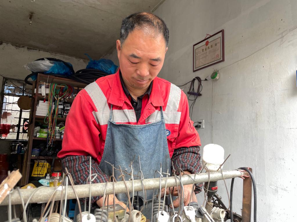 在胡師傅修車鋪內(nèi),一張個(gè)體戶營(yíng)業(yè)執(zhí)照格外醒目。 新華社記者 程思琪攝
