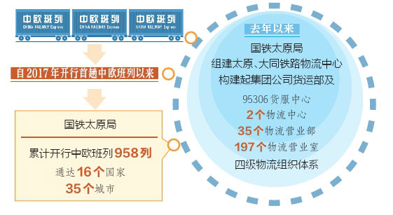 “自2017年開行首趟中歐班列以來,國鐵太原局累計(jì)開行的中歐班列已有958列,通達(dá)16個國家、35個城市?!眹F太原局貨運(yùn)部科長田源介紹,“中歐班列已經(jīng)成為不沿海、不沿邊的山西省對外開放重要平臺?!?/p>