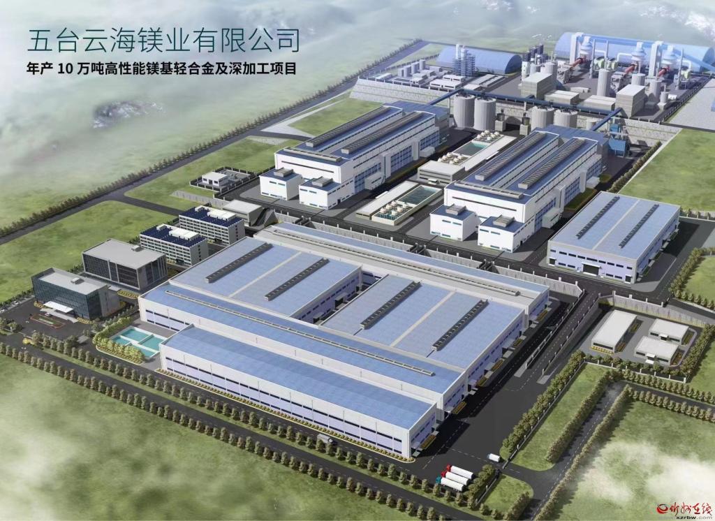 五臺云海鎂業(yè)年產(chǎn) 10 萬噸高性能鎂基輕合金及深加工項目效果圖 。