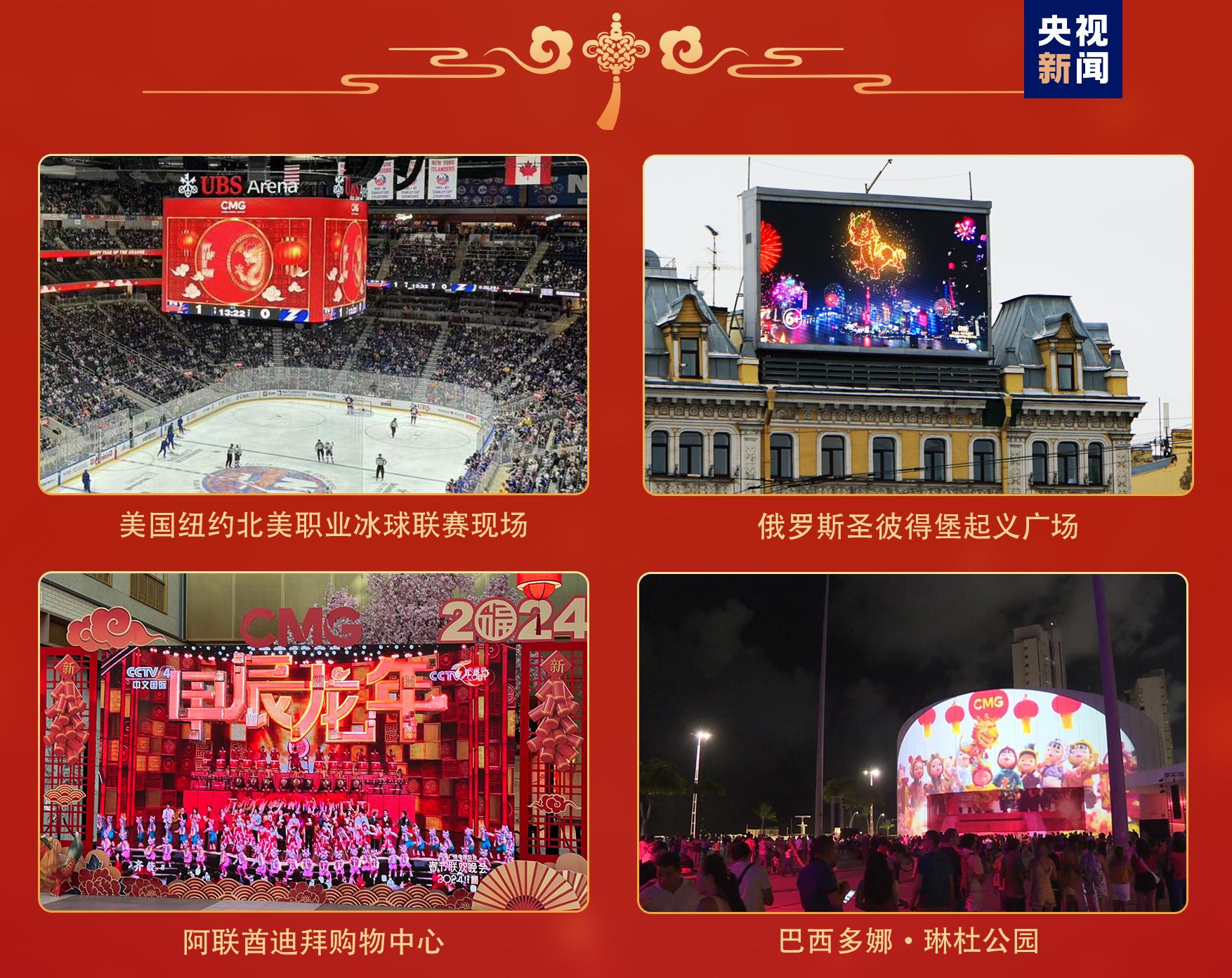 全球看春晚。作為聯(lián)合國大會將農(nóng)歷新年列為聯(lián)合國假日后的首個新年,總臺主辦的“春晚序曲 全球看春晚”活動在美國、肯尼亞、瑞士等多國舉辦近40場;各大洲49個國家、90座城市的3000余塊公共大屏直播和宣介總臺春晚;世界最高建筑迪拜哈利法塔、非洲第一高樓埃及新行政首都中央商務(wù)區(qū)標(biāo)志塔、瑞典斯德哥爾摩市中心國王花園廣場、巴西多娜·琳杜公園等多個全球地標(biāo)性建筑上演春晚燈光秀……靈動吉祥的“龍辰辰”將中國新年的美好祝愿傳遍全球。