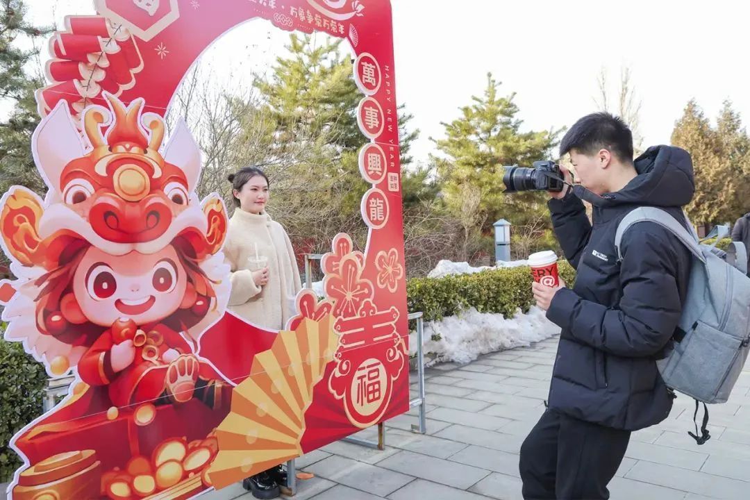 人們在陽泉記憶·1947文化園舉辦的2024新春游園會(huì)上打卡拍照