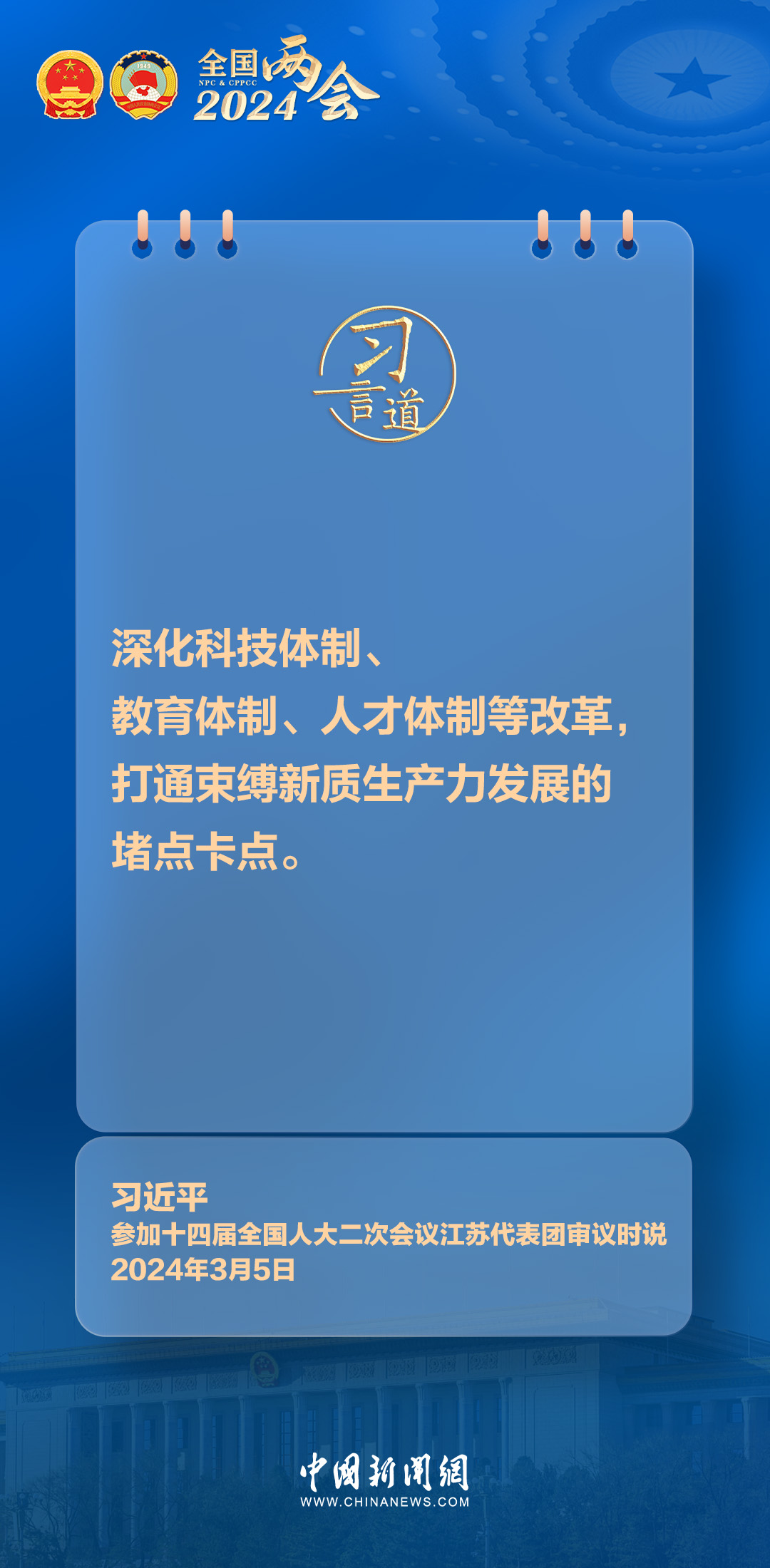 中共中央總書記、國家主席、中央軍委主席習(xí)近平5日下午參加他所在的十四屆全國人大二次會議江蘇代表團(tuán)審議。習(xí)近平指出——