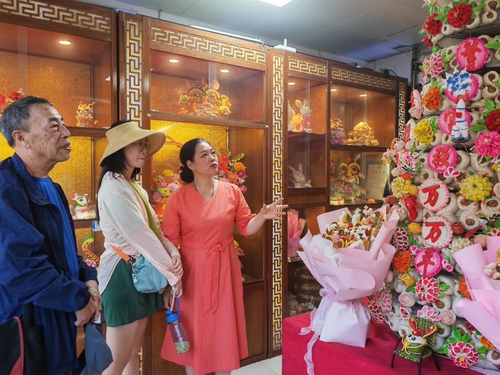 新華社西安6月19日電(記者孫正好)“沒想到一個面團,能被玩出這么多花樣!”在陜西韓城古城歷史文化街區(qū)的一家花饃店內(nèi),北京游客王華對著造型各異的韓城花饃發(fā)出感嘆。