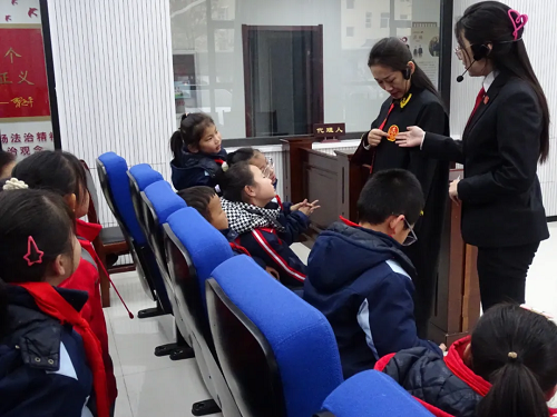 “訴訟服務中心是人民法院審判工作的窗口,在這里進行立案登記……”在訴訟服務中心,立案庭庭長介紹了法院訴服中心的內設情況,并讓同學們觀看了普法動漫《小馬里奧成長記》,用新穎的方式讓法律說話,引導青少年學習法律知識,識別不法行為,保護自身合法權益。