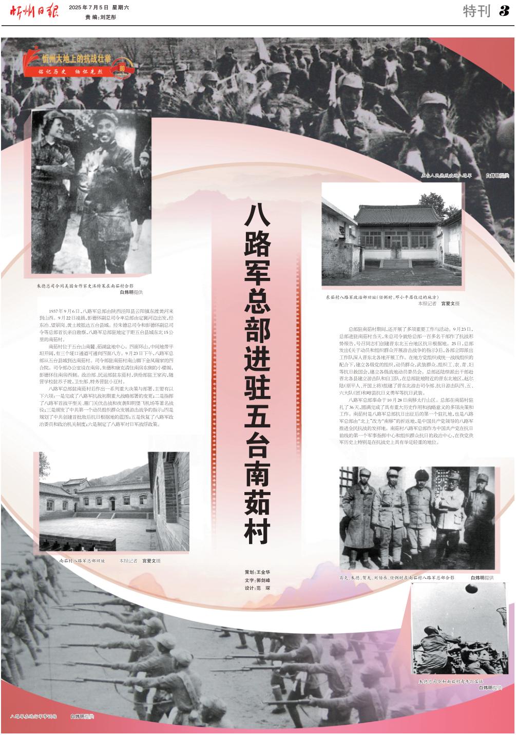 1937年9月6日,八路軍總部由陜西涇陽縣云陽鎮(zhèn)東渡黃河來到山西。9月22日凌晨,彭德懷副總司令率總部由定襄河邊出發(fā),經(jīng)東冶、望景崗、黃土坡抵達(dá)五臺縣城。經(jīng)朱德總司令和彭德懷副總司令等總部首長親自勘察,八路軍總部駐地定于距五臺縣城東北15公里的南茹村。